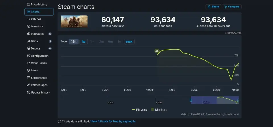 Dune: Awakening si za necelých 24 hodin zahrálo přes 93 000 hráčů